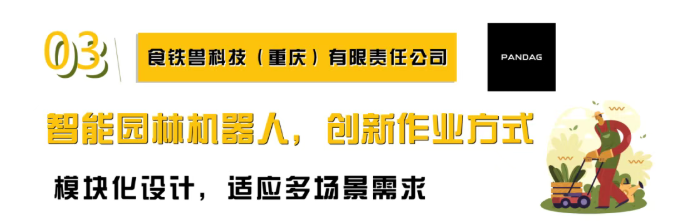 食铁兽科技致力于为全球超1000万专业用户,提供全场景商业农业园林机器人,推出的全球首款模块化商用园林机器人PANDAG G1,以纯电化、模块化、智能化为三大产品内核,打造B端用户全场景智能作业体系,目前产品已销往美、日、澳等国家和地区。食铁兽科技拥有强有力的资金支持和技术团队,由原大疆创新董事长、香港科技大学李泽湘教授亲自孵化投资,目前已获 xbotpark、奇绩创坛(原硅谷YC)等资本多轮投资,团队受共青团中央、UNDP等媒体组织报道,正在全球化拓展进程中,为全球客户提供优质的售后保障与服务。