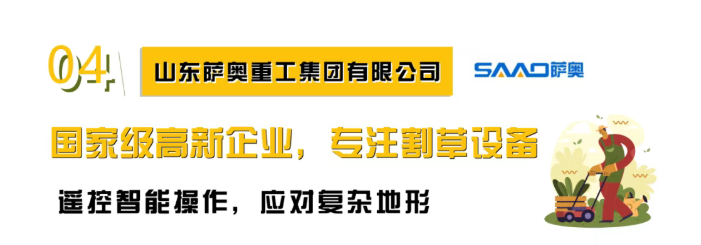 山东萨奥重工集团有限公司于2005年发展至今,位于济宁高新区凯旋路6号萨奥工业园,是一家集机械研发、生产加工、品牌营销、项目孵化、电子商务及平台运作于一体的全产业链国家级高新技术企业。依托成熟的机械设备研发生产与技术优势,萨奥集团针对不同场景自主研发定制的遥控割草机,适用于开荒、果园、斜坡等场景。远程遥控,解放双手,节省人力,让割草工作更简单!